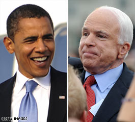 McCain looks like he's stifling a heart attack, or at least very strong heartburn, while Obama looks like he's telling the people "Yeah baby, I'm the coolest guy that could run for president," {which he just might be . . . ?}